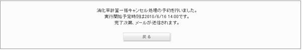 「計測商品一括リセット」ボタンをクリックすると計測の一括停止処理が予約され、処理が完了すると貴社のメールアドレス宛に完了メールが届きます。