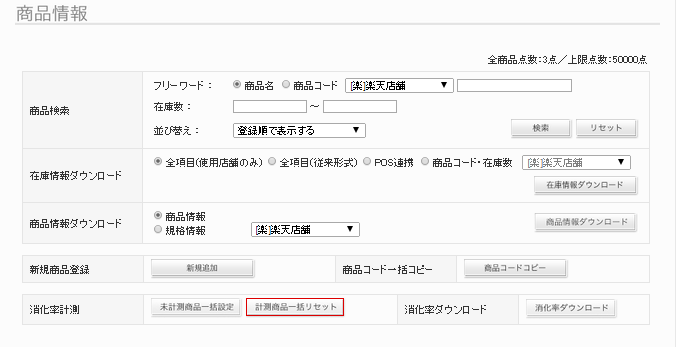 ※この操作によって、消化率の計測を開始している商品すべての消化率計測が停止されます。