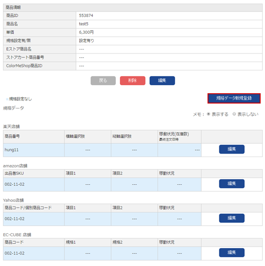 別の商品に新たに規格データの登録をする場合は、手順1から操作を行います。