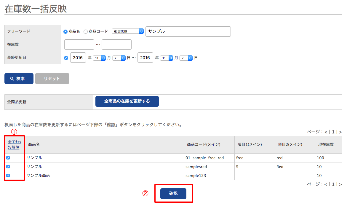 zaiko Robot商品マスタに登録されている全商品(在庫連動がonになっている商品)の在庫数を、一括で各店舗に反映する(在庫数一括反映)方法についてご案内します。